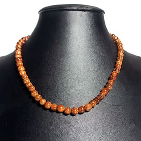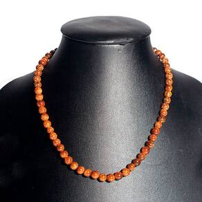 Colar Choker Bolinha 6mm Pedra Pedra do Sol Natural Rolada 40cm, Gargantilha com Bolinha Pedra Natural com furos MANUAIS ao meio da pedra, Fecho Lagostas Furos bem centrais, o fio é uma Linha de Nylon multifilamento