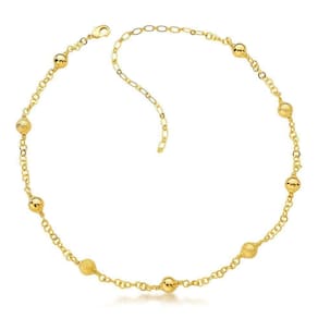 Colar Choker Bolinhas Foscas Banhada A Ouro 18k - 32cm Colar Choker Bolinhas Foscas Banhada a Ouro 18k 32cm - Apresentamos o Colar Choker com Bolinhas Foscas, uma joia elegante banhada a ouro 18k, perfeita para mulheres jovens. Seu design versátil combina bolinhas foscas com o brilho sutil do ouro, proporcionando sofisticação para diversas ocasiões. Além da beleza, a durabilidade é garantida pelo banho em ouro 18k. Com fecho ajustável, é a escolha ideal para adicionar um toque de luxo ao seu estilo diário ou eventos especiais.