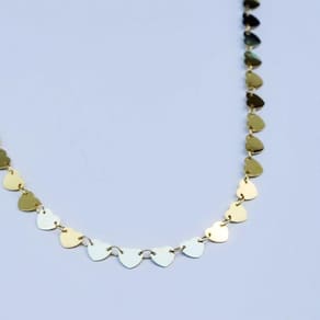 Encante-se com a sofisticação do Colar Choker Corações banhado a ouro 18k, uma peça de destaque em qualquer ocasião. Com 5,5mm de largura, este colar choker traz um design elegante de corações delicados que adicionam um toque de romantismo e modernidade ao seu visual. Ideal para quem busca um acessório versátil e atemporal, perfeito para compor desde looks casuais até produções mais elaboradas. Feito com materiais de alta qualidade, é uma joia que valoriza a sua beleza e estilo. Invista na elegância e na durabilidade do colar choker da Atraktiva Joias e realce sua presença com um brilho dourado incomparável.