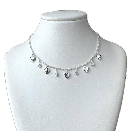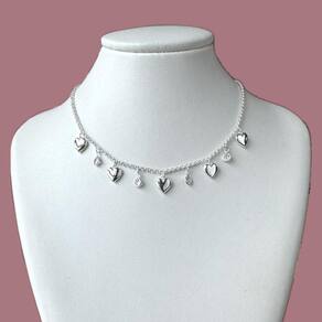 Colar Choker Corações e Zircônias Cristais Banhado a Prata