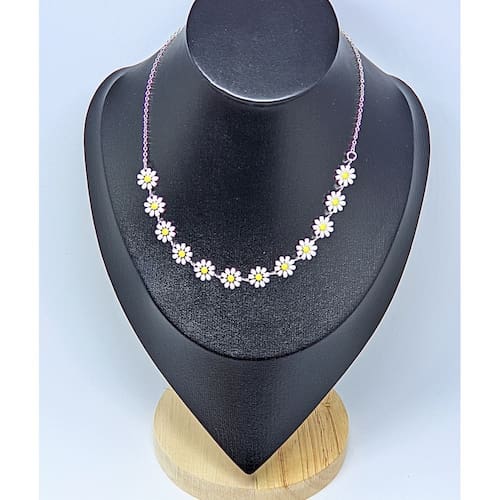 ESPECIFICAÇÃO COLAR : Produtos de alto padrão de qualidade todo prateado e flor margaridas branca De metais nacionais com proteção de verniz antialérgico. MEDIDAS Colar: 37 cm + 5CM Regulagem