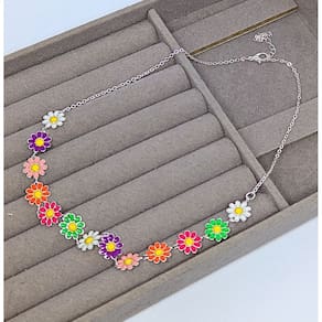 ESPECIFICAÇÃO COLAR : Produtos de alto padrão de qualidade todo prateado e flor margaridas branca De metais nacionais com proteção de verniz antialérgico. MEDIDAS Colar: 37 cm + 5CM Regulagem