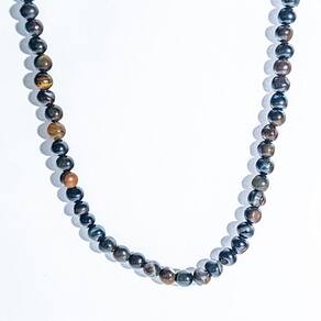 Colar Choker feito de Pedra Olho de Falcão Natural, Bolinhas de 6mm, comprimento 40cm, Gargantilha com Bolinha Pedra Natural com furos manuais ao meio da pedra, Fecho Lagosta Furos bem centrais, o fio é uma linha preta encerada.