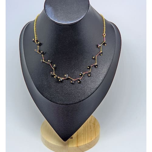 Material: Metal folheado na cor dourada, garantindo um brilho duradouro e acabamento refinado. Detalhes: Pedras de cristal zircônia nas cores transparente cristal, preta e pérola dourado, que conferem um charme sutil e sofisticado. Dimensões: Choker com 40cm + extensor de 5cm para ajuste perfeito; pingente delicado medindo 0,5cm de altura por 0,3cm de largura. Fecho: Tipo lagosta, seguro e prático para o dia a dia.