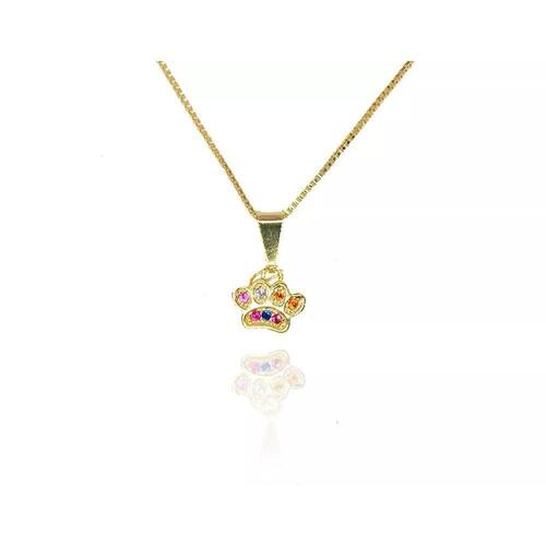 Fabricado com materiais de alta qualidade, o Colar Pingente Patinha De Cachorro Colorida é folheado a ouro 18k, garantindo brilho e durabilidade excepcionais.