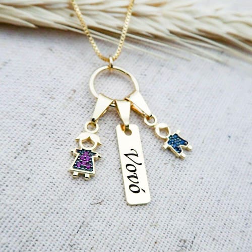 Colar Personalizado Com Pingente Placa Escrito Vovó E Dois Pingentes De Menino(a) Banhado Em Ouro 18k. ESPECIFICAÇÕES: Corrente: Corrente veneziana 45 cm + 5 cm de extensor Pingente: 2 cm x 3,5 cm Peso: 3,8 gramas Material: Banho de ouro DETALHES: Colar com corrente veneziana confeccionada com um lindo pingente de placa escrito vovó e dois pingentes de menino(a)... Esse colar é um produto personalizado e será fabricado a partir do seu pedido, especialmente para você! O colar vai embalado em uma linda caixinha de presente exclusiva Joyce Fenolio Joias! GARANTIA: Nossas peças passam por um criterioso processo de qualidade, desenvolvida com banho de até 10 camadas de Ouro 18K. Produzidas com tecnologia hipoalergênica, livre de metais pesados (não contém níquel). E com garantia de 6 meses quanto ao banho. Encante-se com a qualidade e o prazo da Joyce Fenolio Joias! Fabricação Full até 2 dias úteis! NÃO FAZEMOS TROCA DE PRODUTOS PERSONALIZADO. Marca: Joyce Fenolio