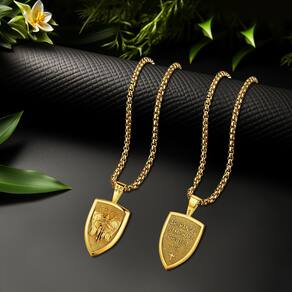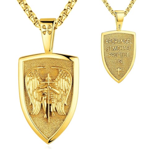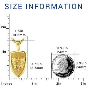 Pingente de São Miguel para homens e mulheres colar de ouro de São Miguel 14K São Miguel Arcanjo Medalla feito à mão Santo talismã arco anjos michael shield 18K 24K - Inscrição: "ARCHANGEL ST MICHAEL PROTECT US". São Miguel Arcanjo é um anjo e o líder de todos os anjos e do exército de Deus. O colar escudo simboliza defesa, proteção, segurança, firmeza, peso e nobreza. - Pingente de arcanjo de São Miguel em ouro (banhado a prata esterlina 925 com ouro amarelo), sem , níquel, cádmio e não irrita a pele. Aprovado na inspeção SGS. Adequado para pessoas com pele sensível. Esta é uma medalha de São Miguel cheia de força, adequada para homens ou mulheres como presente. É uma adição atemporal ao seu visual diário. Lindo design, também pode ser utilizado como um colar de casal. - Comprimento da corrente: 56 cm + extensor de 5 cm = 61 cm | Largura da corrente: 0,3 cm = 3 mm | Peso do pingente: Aproximadamente 6,5 gramas | Altura do pingente: 3,8 cm = 38,5 mm | Largura do pingente: 1,8 cm = 1,8 cm 8,5 mm | Fecho de lagosta - O comprimento da corrente ajustável permite que você combine facilmente com qualquer roupa. O pingente removível oferece a flexibilidade para mudar para o seu pingente favorito ou até mesmo adicionar mais, se desejar. - Satisfação do cliente em primeiro lugar, para todas as medalhas de ouro de São Miguel, se você tiver alguma dúvida, sinta-se à vontade para entrar em contato conosco, faremos o nosso melhor para ajudá-lo.