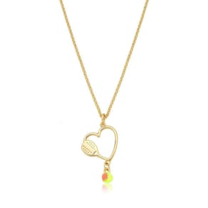 A VL accessoires elaborou com muito carinho, para os admiradores e apaixonados por Beach Tennis, o Colar Coração Beach Tennis! Seu design é único e minimalista, trazendo a raquete incorporada ao coração e uma pequena bolinha pendente, esmaltada nas cores Neon do esporte! Uma joia exclusiva VL accessoires.