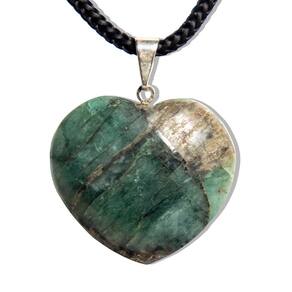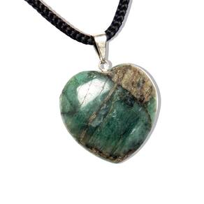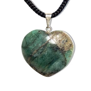 Colar com Pingente de Esmeralda Verde Natural - Lapidação Manual - Pronto para Uso O que irá receber:\n1 Colar com Pingente de Esmeralda Verde Natural, pronto para uso, perfeito para quem busca elegância, energia positiva e autenticidade em uma única peça.\nDetalhes do Colar:\nCordão: Fio encerado preto, resistente e confortável, com fecho ajustável e corrente, garantindo versatilidade e conforto. Fecho: Lagosta niquelado, prático e seguro para o uso diário. Dimensões: 50 cm de comprimento x 3 mm de largura – Ideal para um look delicado e sofisticado. Peso Aproximado: 1,2 gramas – Leve e confortável para usar durante o dia todo.\nDetalhes do Pingente:\nPedra: Esmeralda Verde Natural de Garimpo, lapidada manualmente com todo o cuidado e acabamento exclusivo. Cor da Pedra: Verde vibrante, com rajas pretas, trazendo um toque de sofisticação e mistério. Corte da Pedra: Coração abaulado, lapidação artesanal que realça a beleza e brilho da pedra. Claridade: Pedra com brilho intenso e opaco, sem transparência, para um visual único e encantador. Medidas da Pedra: Aproximadamente 30 x 25 mm, com leve variação natural. Peso da Pedra: 20 quilates, proporcionando um impacto visual elegante e imponente. Montagem: Pino e perinha prateados, garantindo durabilidade e resistência à peça. Origem: Brasil – Montagem feita em Curvelo, Minas Gerais.\nBenefícios da Esmeralda Verde:\nConhecida por suas propriedades de cura e equilíbrio emocional, a Esmeralda Verde é uma pedra natural que transmite serenidade e harmonia, além de ser valorizada pela sua beleza única.\nObservação:\nCada peça é única devido à natureza da pedra, podendo apresentar variações no tom e nas características da Esmeralda Verde. Foto ilustrativa: As imagens podem não refletir 100% as variações naturais de cor e textura das pedras. Marca: CristaisdeCurvelo