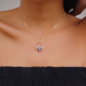 Detalhes Do Produto Corrente - Modelo Veneziana 40 cm + 5 cm de extensor Pingente - Coração Vazado com uma Nossa Senhora Aparecida no centro com o manto cravejado de zircônia azul Material - Semijoia com banho de ouro 18k Acompanha - Bolsinha de veludo com botão personalizada para guardar sua semijoia