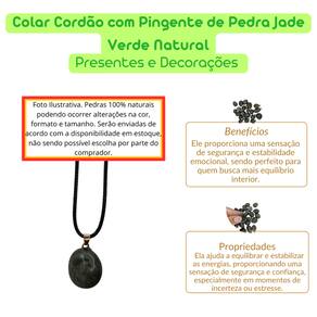 Colar Cordão com Pingente de Pedra Jade Verde Natural