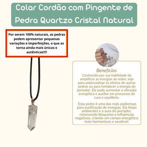 Colar Cordão com Pingente Pedra Quartzo Cristal Colar Cordão com Pingente de Pedra Quartzo Cristal Natural Este colar com cordão e pingente de pedra quartzo cristal natural é uma peça sofisticada e energética, perfeita para quem busca equilíbrio e clareza. O quartzo cristal é uma das pedras mais poderosas e versáteis, sendo conhecido por sua capacidade de amplificar energias, promover a limpeza energética e trazer equilíbrio mental e emocional. Ao ser como pingente, ele não só adiciona um toque elegante ao seu visual, mas também age como um amuleto que favorece a purificação, a clareza mental e o fortalecimento da energia pessoal. Benefícios Energéticos: Amplificação de Energia: O quartzo cristal é conhecido por sua habilidade de amplificar as energias ao redor, seja para potencializar os efeitos de outras pedras ou para fortalecer a energia do portador. Ele pode aumentar a vibração energética e auxiliar em processos de cura e equilíbrio. Purificação e Limpeza Energética: Esta pedra é uma das mais poderosas para purificação de energias. Ela limpa ambientes e a aura do portador, removendo bloqueios e influências negativas, criando um campo energético mais harmonioso e saudável. Clareza Mental e Equilíbrio Emocional: O quartzo cristal é altamente eficaz em trazer clareza mental, promovendo decisões mais racionais e equilibradas. Ele também ajuda a equilibrar as emoções, proporcionando uma sensação de paz interior, tranquilidade e calma. Por serem 100% naturais, as pedras podem apresentar pequenas variações e imperfeições, o que as torna ainda mais únicas e autênticas. Enviamos em até 24 horas após a confirmação do pagamento Se você tiver alguma dúvida, não hesite em nos mandar uma mensagem Responderemos rapidamente para ajudá-lo da melhor forma possível Marca: Não Informado