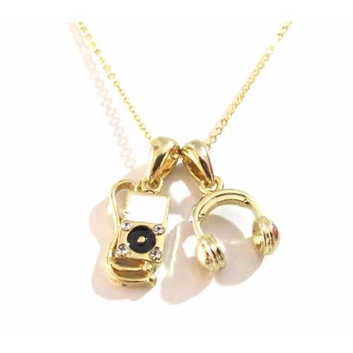 Colar Cordão Fone Ouvido Música Folheado A Ouro 18k