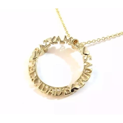 Colar Cordão Mandala Paz Amor Felicidade Folheado