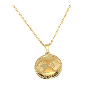 Colar Cordão Medalha Administração Folheado Ouro 18k
