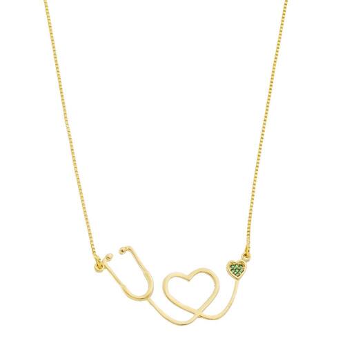 Colar cordão profissões estetoscópio coração folheado ouro 18k