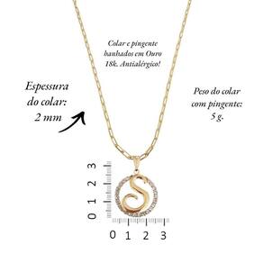 Corrente Colar modelo feminino pingente Mandala letra inicial S banhado em Ouro 18k.
