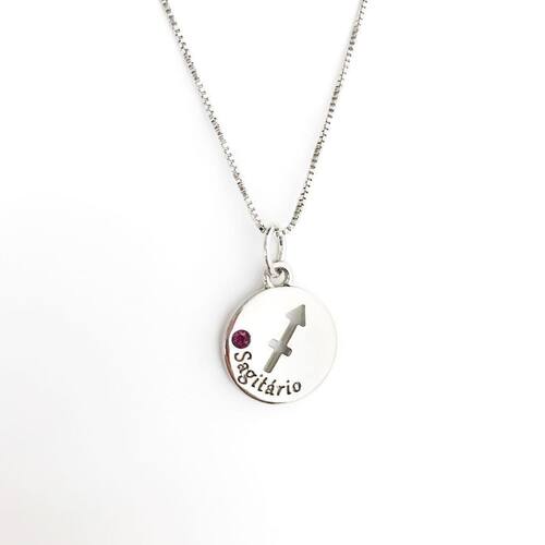 Colar com pingente com medalha de signo de Sagitário, que vem com uma pedrinha com a cor