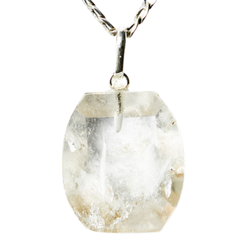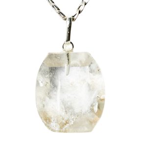 Pingente Cristal com Inclusão Lodolita Montagem Pino e Prata 950 (PRATA DE LEI). Montagem do Pingente é Pino e Perinha mais furo na Pedra Genuina com origem garimpo com lapidação e montagem manual, Já vai montado.