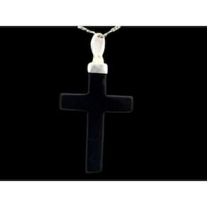 Crucifixo de pedra Onix Preto natural, envolto em prata, representa a proteção. Um acessório de fé e estilo para todas as ocasiões. O que irá receber:
