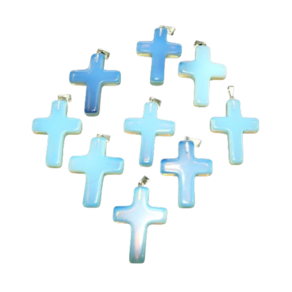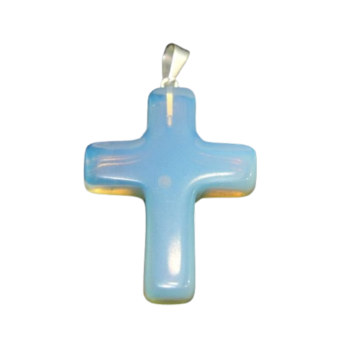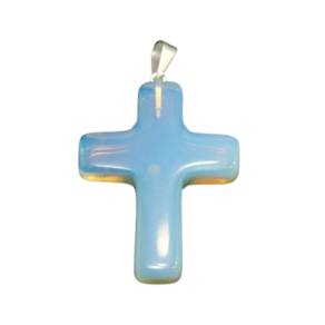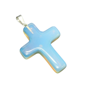 Crucifixo Pingente Pedra da Lua Opalina, lapidação em Cruz totalmente artesanal com polimento, a montagem é feita pino e presilha envolto em Prateado
