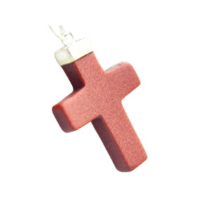 Crucifixo Pingente Pedra do Sol, lapidação em Cruz totalmente artesanal com polimento, a montagem é feita em volto da peça em Prateado
