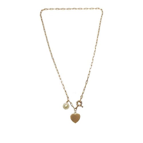 Colar curto Armazem RR Bijoux pérola e coração dourado