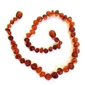 Seu bebê está agitado durante todo o dia . Você percebe sintomas de dentição e decide ajudar seu bebê aliviando a dor naturalmente. O que você deve fazer dentre as muitas opções diferentes de solução da dentição é vestir um Colar de Âmbar Baroque Cognac (Conhaque).
