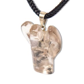 Colar de Anjo Fumê Pedra Cristal Natural, delicado e elegante. Acompanha você em todos os momentos do dia. O que irá receber:1- Colar com Pingente em pedra Natural pronto para usoDetalhes do Cordão ou Colar:Cordão ou Colar, feito de fio encerado preto com fecho ajustável com correnteFecho Lagosta (Niquelado)Dimensões: 50 cm comprimento x 3 mm larguraPeso aproximado: 1.2 gramas (Leve)Detalhes do Pingente:NOME DAS PEDRAS: Fumê Cristal Tok esfumaçado