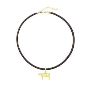 Colar De Couro Natural Café Com Pingente Boi Revestido Em Ouro Tamanho 42cm