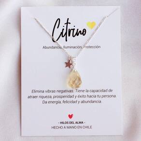 Colar de prata 92,5 com abundância de citrino l, iluminação e proteção que elimina vibrações negativas. Tem a capacidade de atrair riqueza, prosperidade e sucesso para sua pessoa. Dá energia, felicidade e abundância. 100% feito à mão. Material: corrente de prata 92,5 e 45 cm Para guardar suas joias de prata, lembre-se sempre de guardá-las em um local seco e apertado. Mantenha-o fora do contato com produtos químicos, cremes e perfumes. Use um pano especial não abrasivo para evitar arranhões e limpe-os com produtos especializados.