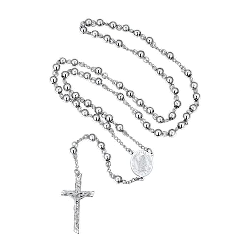 ? Joias FaithHeart ---- Presentes exclusivos de fé feitos de qualidade Esperamos que você encontre um item devocional significativo para guardar por toda a vida. Um símbolo de devoção, compromisso e amor, oferecemos colares, pulseiras, anéis e outros para durar uma vida inteira. Nossos produtos inspiradores iluminarão o dia de qualquer pessoa que os receber. Informações da embalagem: 1 colar em Y 1 pano de limpeza. 1 caixa de presente. ? Como manter os produtos -- Mantenha longe de água e suor. -- Evite a exposição a produtos químicos, locais de picos. -- Limpe com um pano macio seco quando tiver manchas. - Colar inspirado no rosário clássico. Apresenta um pingente de cruz de crucifixo e medalhão central milagroso no meio e no solo sagrado. Design exclusivo de corrente de rosário de contas de aço inoxidável, cor clássica dando a este item um apelo moderno, permite que você se torne o foco das pessoas. - ?x:li> Elos robustos e fortes{{/WF_ -- Comprimento do pingente: 16 cm (6,5"), Comprimento da corrente: 66 cm (26"), que caberá na maioria das pessoas confortavelmente e pode ser facilmente puxado sobre a cabeça. Devido ao design do pulôver, não depende de nenhum tipo de fecho. - Ajuste confortável e de longa duração. Este colar de cruz é realmente elegante. A medalha é feita de aço inoxidável 316L, totalmente hipoalergênico e ajuste confortável. Sem grafite e níquel! - Miçangas de rosário sólidas para cristãos. Com colar de crucifixo católico, peso agradável, ótimo rosário diário para homens ou mulheres carregarem com eles no bolso ou na mão. Cada colar vem cuidadosamente embalado pronto para presente. - Rosários impressionantes, valorize o dinheiro- Este magnífico pingente de cruz é absolutamente lindo. Este presente é perfeito para qualquer ocasião especial ou feriado cristão! Dê este presente para o seu ente querido e saiba que eles vão apreciá-lo e mantê-lo com ele por muitos anos!