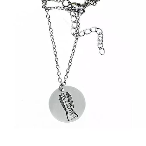 - O atraente colar com pingente apresenta um anjo chorão da série de ficção científica de sucesso!