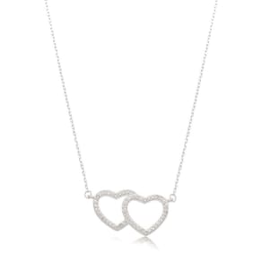 Colar Dois Corações Femininas Prata 925 Colar Dois Corações Femininas Prata 925 40cm - Colar Dois Corações Femininas Prata 925 Colar feminino em Prata 925 com dois corações entrelaçados, simbolizando união e carinho. Os corações possuem detalhes delicados em zircônias, conferindo um brilho sutil e elegante. A corrente tem 40 cm de comprimento, com extensor de 5 cm, e o pingente mede 2,1 cm de largura por 0,5 cm de altura. Ideal para quem aprecia joias românticas e delicadas.