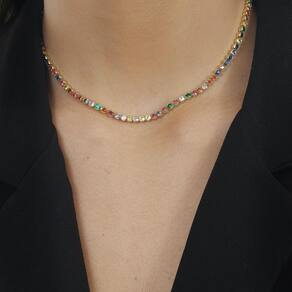 Colar Dourado Chocker Riviera Pedras Coloridas Aurearosa - Semi Joias Na AureaRosa, você encontra peças únicas e cheias de elegância, perfeitas para complementar seu estilo com brilho e sofisticação. Nossas semi joias são cuidadosamente selecionadas, combinando design moderno e alta qualidade para valorizar cada look. Banho de Ouro 10 Milésimos - Peças banhadas a ouro com um toque delicado e brilhante. Para maior durabilidade, recomendamos evitar contato com água, perfumes e produtos químicos. de 2 Anos - Toda peça possui direto com a fábrica, assegurando qualidade e satisfação. Presenteie-se ou surpreenda quem você ama com joias que trazem beleza e confiança. Aurearosa - Brilho que Conquista Marca: Aurearosa