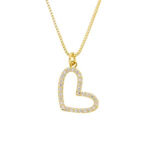 Colar Dourado De Coração Irregular Vazado Com Zircônia