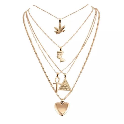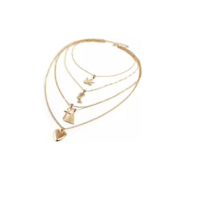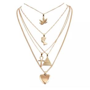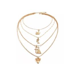 descrição -colar de corrente em liga de zinco dourado 5 camadas -fecho lagosta -detalhe: pingentes dourado -estilo moderno e delicado -obs: colar multi camadas, não é possível usar as correntes separadas. Pacote inclui: 1x colar 5 camadas dourado