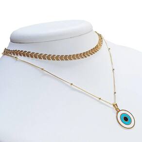 O colar Duplo Gargantilha e Corrente Corações é um acessório moderno e despojado, que traz personalidade e atitude para o look. Perfeito para quem gosta de estar sempre bem arrumada e na moda