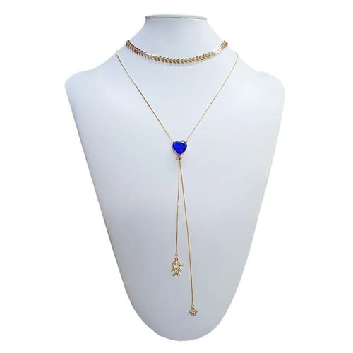 O colar Duplo Gravatinha e Gargantilha é um acessório moderno e despojado, que traz personalidade e atitude para o look. Perfeito para quem gosta de estar sempre bem arrumada e na moda