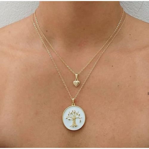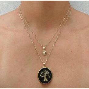 Colar Duplo Árvore Da Vida Folheado A Ouro 18K