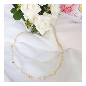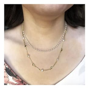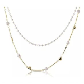 Modelo: Colar Duplo Com Corrente De Perola E Mini Corações Dourados