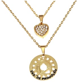 Corrente Menor mede aproximadamente 40 Cm, corrente maior aproximadamente 45 Cm. Quando comprar peças folheadas, duas coisas devem ser levadas em consideração, a primeira que quanto mais cuidado você ter, mais elas irão durar e que um dia infelizmente elas irão perder o brilho e a cor, afinal não são de ouro maciço. Cuidados: Não pode molhar, praticar exercícios físicos ou trabalhos forçados, suor excessivo, utilizar para dormir. Quando for utilizar qualquer tipo de cosméticos, cremes, perfume, coloque a peça folheada somente após 30 minutos. Aconselhamos a utilizar seu folheado mais para sair. Assim você irá diminuir os riscos que as citações acima ocorram. Quanto mais cuidar, mais ira durar. Nossa é de 3 meses quanto a defeitos de fábrica.