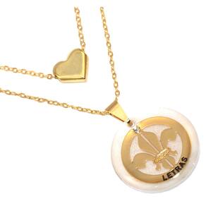 Corrente menor mede aproximadamente 40 Cm, corrente maior aproximadamente 45 Cm. Pingente maior aproximadamente 2 Cm. Quando comprar peças folheadas, duas coisas devem ser levadas em consideração, a primeira que quanto mais cuidado você ter, mais elas irão durar e que um dia infelizmente elas irão perder o brilho e a cor, afinal não são de ouro maciço. Cuidados: Não pode molhar, praticar exercícios físicos ou trabalhos forçados, suor excessivo, utilizar para dormir. Quando for utilizar qualquer tipo de cosméticos, cremes, perfume, coloque a peça folheada somente após 30 minutos. Aconselhamos a utilizar seu folheado mais para sair. Assim você irá diminuir os riscos que as citações acima ocorram. Quanto mais cuidar, mais irá durar. Nossa é de 3 meses quanto a defeitos de fábrica. Quando comprar peças folheadas, duas coisas devem ser levadas em consideração, a primeira que quanto mais cuidado você ter, mais elas irão durar e que um dia infelizmente elas irão perder o brilho e a cor, afinal não são de ouro maciço. Cuidados: Não pode molhar, praticar exercícios físicos ou trabalhos forçados, suor excessivo, utilizar para dormir. Quando for utilizar qualquer tipo de cosméticos, cremes, perfume, coloque a peça folheada somente após 30 minutos. Aconselhamos a utilizar seu folheado mais para sair. Assim você irá diminuir os riscos que as citações acima ocorram. Quanto mais cuidar, mais ira durar. Nossa é de 3 meses quanto a defeitos de fábrica.