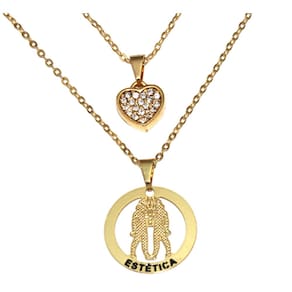 Corrente menor mede aproximadamente 40 Cm. Corrente maior aproximadamente 45 Cm. Pingente maior aproximadamente 2 Cm. Quando comprar peças folheadas, duas coisas devem ser levadas em consideração, a primeira que quanto mais cuidado você ter, mais elas irão durar e que um dia infelizmente elas irão perder o brilho e a cor, afinal não são de ouro maciço. Cuidados: Não pode molhar, praticar exercícios físicos ou trabalhos forçados, suor excessivo, utilizar para dormir. Quando for utilizar qualquer tipo de cosméticos, cremes, perfume, coloque a peça folheada somente após 30 minutos. Aconselhamos a utilizar seu folheado mais para sair. Assim você irá diminuir os riscos que as citações acima ocorram. Quanto mais cuidar, mais ira durar. Nossa é de 3 meses quanto a defeitos de fábrica. Ean: 7909389538827 Marca: Não Informado