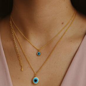O Colar Duplo Olho Grego da Bialluz é de resistência e durabilidade. A corrente possui 45 cm de comprimento, mas é totalmente regulável podendo ser usada por qualquer pessoa, que emanará ótimas energias em sua vida. É uma maravilhosa opção de presente, com certeza a pessoa que receberá sentirá muita gratidão por ter uma peça tão bela.