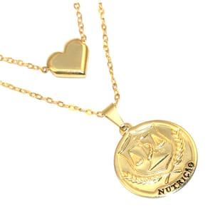 Corrente menor mede aproximadamente 40 Cm...Corrente maior mede aproximadamente 45 Cm, pingente aproximadamente 2 Cm. Quando comprar peças folheadas, duas coisas devem ser levadas em consideração, a primeira que quanto mais cuidado você ter, mais elas irão durar e que um dia infelizmente elas irão perder o brilho e a cor, afinal não são de ouro maciço. Cuidados: Não pode molhar, praticar exercícios físicos ou trabalhos forçados, suor excessivo, utilizar para dormir. Quando for utilizar qualquer tipo de cosméticos, cremes, perfume, coloque a peça folheada somente após 30 minutos. Aconselhamos a utilizar seu folheado mais para sair. Assim você irá diminuir os riscos que as citações acima ocorram. Quanto mais cuidar, mais irá durar. Nossa é de 3 meses quanto a defeitos de fábrica. Quando comprar peças folheadas, duas coisas devem ser levadas em consideração, a primeira que quanto mais cuidado você ter, mais elas irão durar e que um dia infelizmente elas irão perder o brilho e a cor, afinal não são de ouro maciço. Cuidados: Não pode molhar, praticar exercícios físicos ou trabalhos forçados, suor excessivo, utilizar para dormir. Quando for utilizar qualquer tipo de cosméticos, cremes, perfume, coloque a peça folheada somente após 30 minutos. Aconselhamos a utilizar seu folheado mais para sair. Assim você irá diminuir os riscos que as citações acima ocorram. Quanto mais cuidar, mais ira durar. Nossa é de 3 meses quanto a defeitos de fábrica.