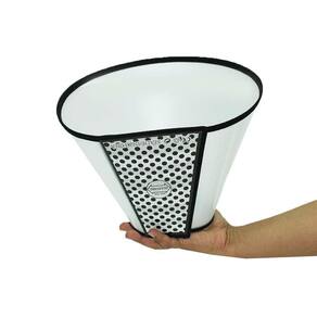 Colar Elizabetano Chalesco Tamanho 3 - Indicado para cães e gatos; - Ideal para tratamento pós cirúrgicos; - Auxilia nos cuidados com o pet; - Bordas com acabamento em nylon; - Fácil utilização. O Colar Elizabetano Chalesco é de uso veterinário e recomendado para o pós operatório, aplicação de algum ou curativo afim de evitar que o animal lamba ou cutuque o local e evitar alguma piora ou até mesmo infecção. Ao ficar preso no pescoço, não restringe os movimentos, super fácil de colocar no pet e não causa irritação na pele. O Colar Elizabetano Chalesco auxilia no tratamento com de uso externo ou pós cirúrgicos, evita o contato do pet com o local atingido. Medidas aproximadas Colar Elizabetano nº3: Espessura: 2mm Largura: 22cm Comprimento: 42cm Circunferência Pescoço: 23 à 27 Verifique o tamanho do pescoço do animal e escolha o modelo correto para não machucar e muito menos escapar.