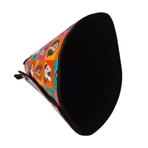 O colar Elizabetano é indicado para cães e gatos e é Utilizado para proteger seu pet na recuperação de cirurgias e tratamentos diversos de saúde. Nosso produto é fabricado em LONA impermeável revestida de emborrachado, não deixa que seu cão fique mais estressado ainda quando estiver doentinho, pois se dobra facilmente na hora dele se alimentar ou tirar uma soneca e não faz barulho quando ele se encostar nas paredes ou móveis, o que permite ainda os indesejáveis arranhões causados pelo colar de plástico. Como tem o fechamento em carrapicho permite que regule melhor no pescoço do animal. Nossa tabela de tamanhos está anexa as fotos. Temos em 11 tamanhos.