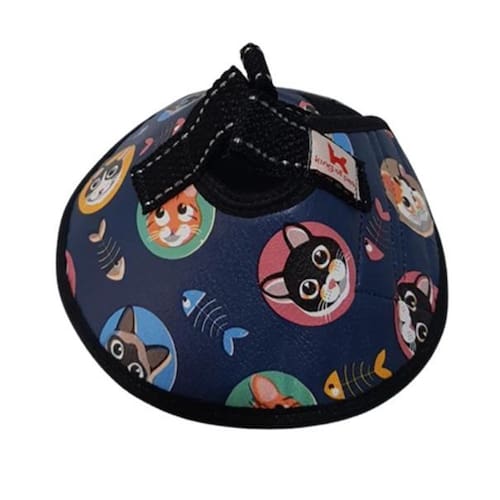 Colar Elizabetano Confort para Gatos O colar Elizabetano é indicado para gatos e é Utilizado para proteger seu pet na recuperação de cirurgias e tratamentos diversos de saúde. Como o nosso produto é fabricado em tecido revestido de emborrachado, não deixa que seu gato fique mais estressado ainda quando estiver doentinho, pois o produto é maleável, se dobra facilmente na hora dele se alimentar ou tirar uma soneca e não faz barulho quando ele se encostar nas paredes ou móveis, o que causa ainda os indesejáveis arranhões causados pelo colar de plástico. Além disso, não interfere na visão periférica dele. Usamos um material emborrachado por dentro e dois forros, o interno é feito de tecido acolchoado e o de fora, de material sintético fino estampado, ambos são fáceis de lavar e secar. Como tem o fechamento em carrapicho permite que regule melhor no pescoço do animal. Temos em quatro tamanhos: PP - 9 cm de comprimento do pescoço à ponta 19 a 22 cm reguláveis no diâmetro do pescoço tamanho da coleira, por Exemplo P - 10 cm de comprimento do pescoço à ponta 22 a 25 cm reguláveis no diâmetro do pescoço tamanho da coleira, por Exemplo M - 11 cm de comprimento do pescoço à ponta 24 a 29 cm reguláveis no diâmetro do pescoço tamanho da coleira, por Exemplo G - 13 cm de comprimento do pescoço à ponta 30 a 34 cm reguláveis no diâmetro do pescoço tamanho da coleira, por Exemplo OBS: A tabela de tamanho conta com medidas aproximadas, visto que cada animal tem suas peculiaridades, dependendo da raça, tamanho e peso.
