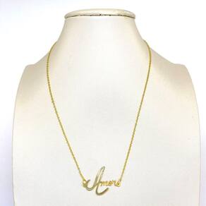 DESCRIÇÃO: Colar folheado a ouro escito Amor, essa peça foi escrita a mão e passada pela computador para dar um efeito diferente, dando um ar único e exclusivo para o colar, são peças atemporais e muito versáteis. O colar possui um design delicado e romântico, é um acessório desenvolvido para mulheres que gostam de estar deslumbrante independente da ocasião. É a responsável por dar charme e sofisticação para o visual, combinando com qualquer estilo DADOS TÉCNICOS: Tamanho de 45cm CARACTERÍSTICAS: Qualidade premium, banhado e desenvolvido com alta tecnologia que garante maior durabilidade e acabamento impecável. Tornando-se um diferencial no mercado. COMPOSIÇÃO: Confeccionado com principal matéria prima uma liga de metais nobres chamada Zamac zinco, magnésio, alumínio, cobre direto da fonte 100% pura que recebe o banho decorativo de ouro 18k em solução. Procedimento galvânico totalmente automatizado com brilho inigualável. Aplicação de verniz inovador de última geração. Garantindo excelência e alto padrão de qualidade em todas as peças. : de 3 meses. Validação da compra. A não cobre defeitos causados por mau uso. DICAS ÚTEIS A Farida Nesi Design oferece a melhor qualidade de acabamento. Cuidados simples preservam a beleza de suas joias por muito mais tempo. Para manter o brilho e qualidade que não use durante o banho, prática de esportes, ou atividades domésticas. Evite contato com água, e produtos químicos. Não passe perfume ou outros produtos sobre a peça. Limpe com uma flanela seca e macia. Guarde com cuidado. Todas as peças acompanham mini sacos ideais para serem armazenados. Compre agora Marca: Não Informado Ean: 7899472400288